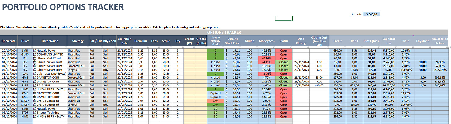 Registraremos las operaciones en este tracker en excel, que es el que aconsejamos a los alumnos del Experto en Opciones de LWS Academy que lleven para registro y control de las mismas: