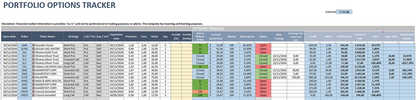 Registraremos las operaciones en este tracker en excel, que es el que aconsejamos a los alumnos del Experto en Opciones de LWS Academy que lleven para registro y control de las mismas: